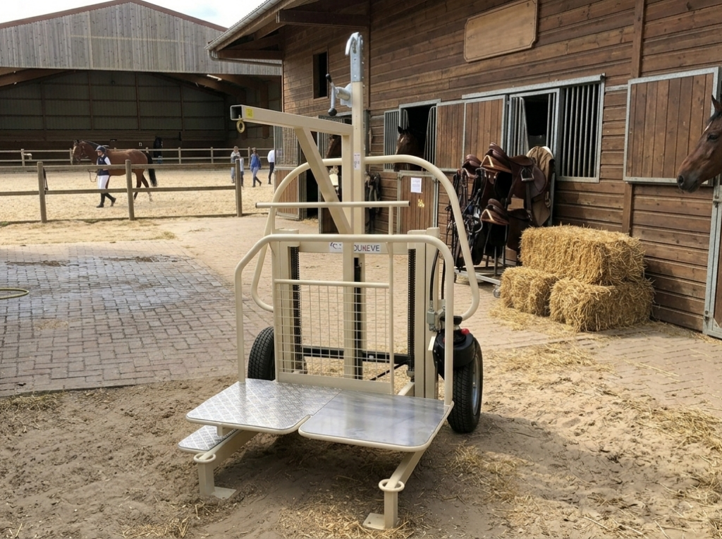 Équilève réduit les efforts physiques, sécurise la mise en selle et fluidifie l’organisation des séances, au service du bien‑être des cavaliers, des chevaux et des équipes.