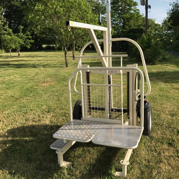 Option Montée du plateau automatique : Equipé d’une centrale hydraulique électrique permettant une trentaine de montée/descente du plateau en automatique. Cette option comprend une centrale hydraulique électrique, sa batterie 12V, son chargeur embarqué et une pompe de secours à main